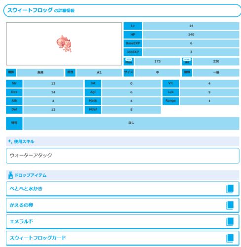 不思議な石片バラマキの4回目は、かえるの卵。ドロップするのは、スウィートフロッグ・タラフロッグ・デワタドラゴン・ロッダフロッグらしい。 ん? スウィートフロッグ? そんなのいたっけ? この手のやつって、だいたいラザーニャ方面だよね。 ってことで…
